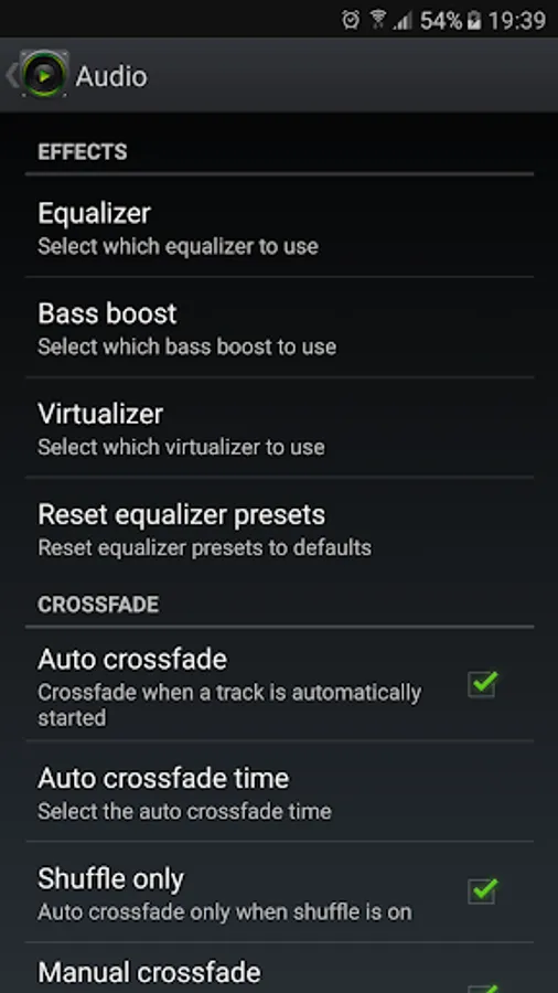 * You can now access the audio effects screen via the options menu or from the player screen (EQ button).