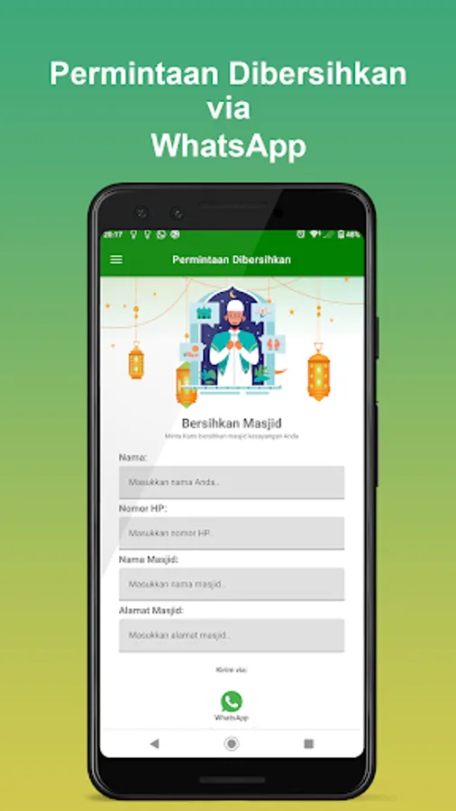The main feature of this TBM application is to make a request to clean the mosque directly to the TBM administrator easily.