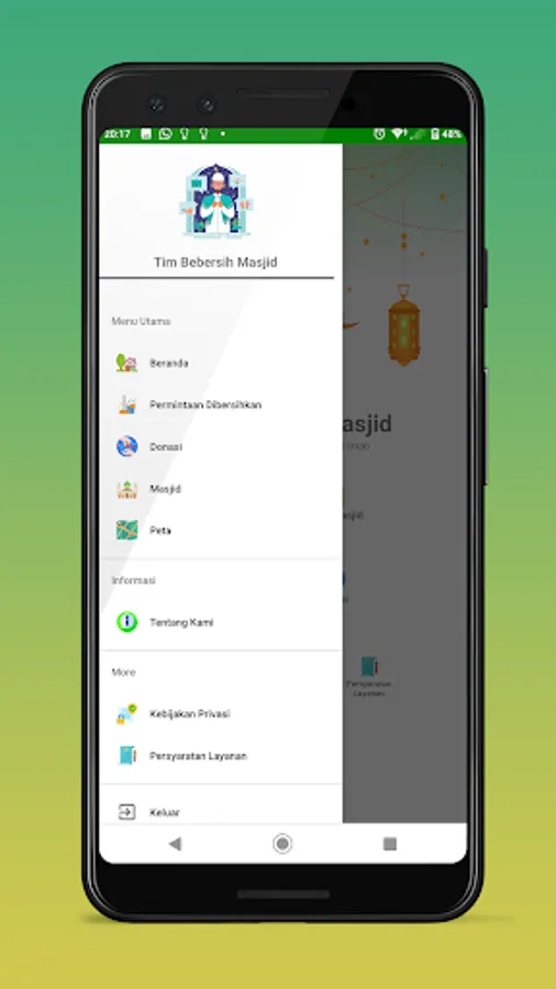 The Mosque Cleaning Team (TBM) application is a mobile-based application for people who want to clean and prosper their mosques.