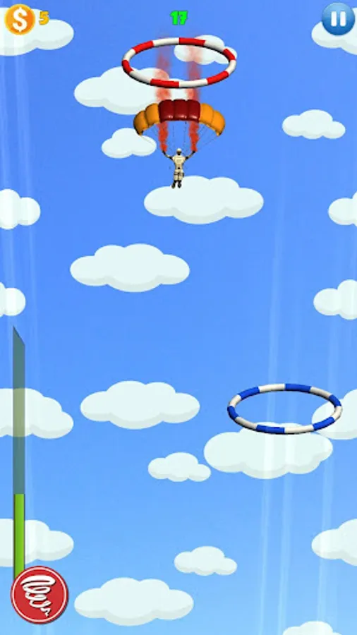 Take control of a parachutist and join a remarkable sky diving endless adventure. Your goal is to fly through hovering hoops by performing rolling stunt, and avoid getting crushed.