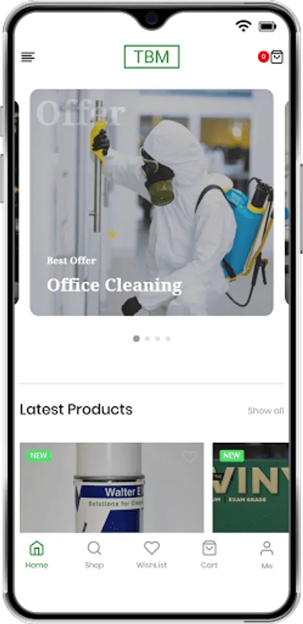 With the TBM app, you no longer have to move an inch to make purchases of cleaning products or book a cleaning appointment. Just open the TBM app on your phone to buy your desired cleaning product(s) or make an instant appointment for cleaning services with a few taps on the screen.