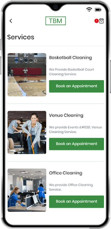 We provide cleaning services for houses, offices, schools, dance floors, events, and venues. Our services range from housekeeping & janitorial services to COVID-19 disinfecting. The purpose of TBM mobile application is to facilitate customers in the purchase of cleaning products. The app also brings booking functionality right at your fingertips. Simply fill in a few details in the app to book our cleaning services as per your needs on the go.