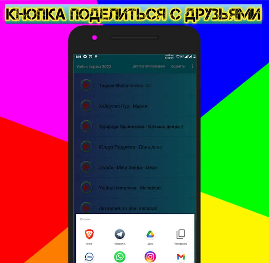 On this application you can listen to the best Uzbek songs for free and without internet.