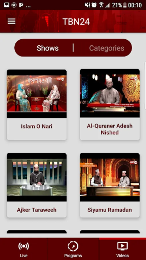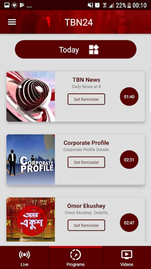 TBN24 app includes these features: