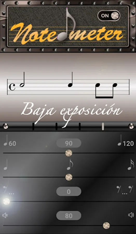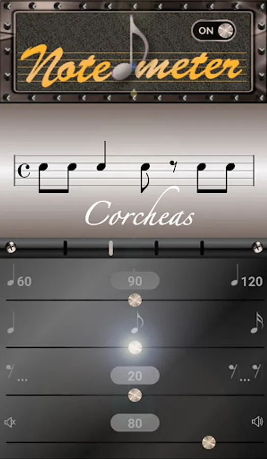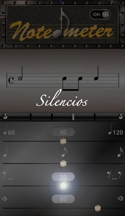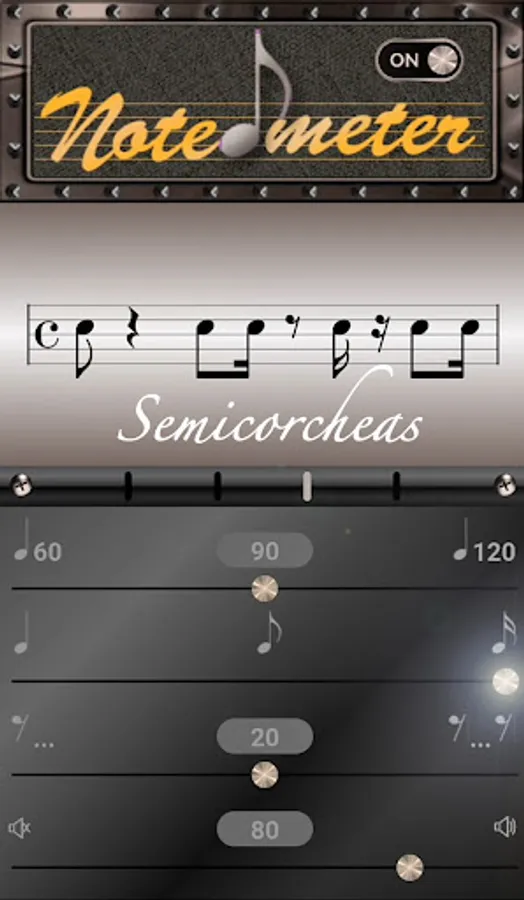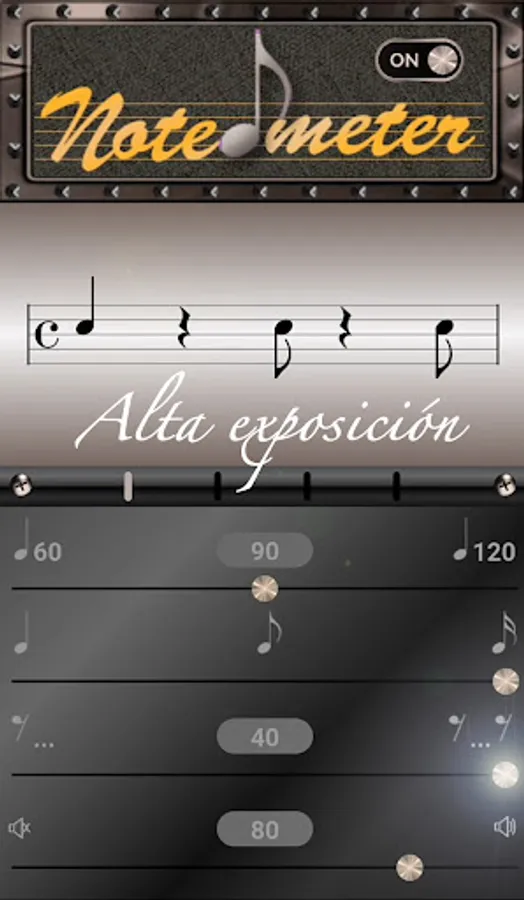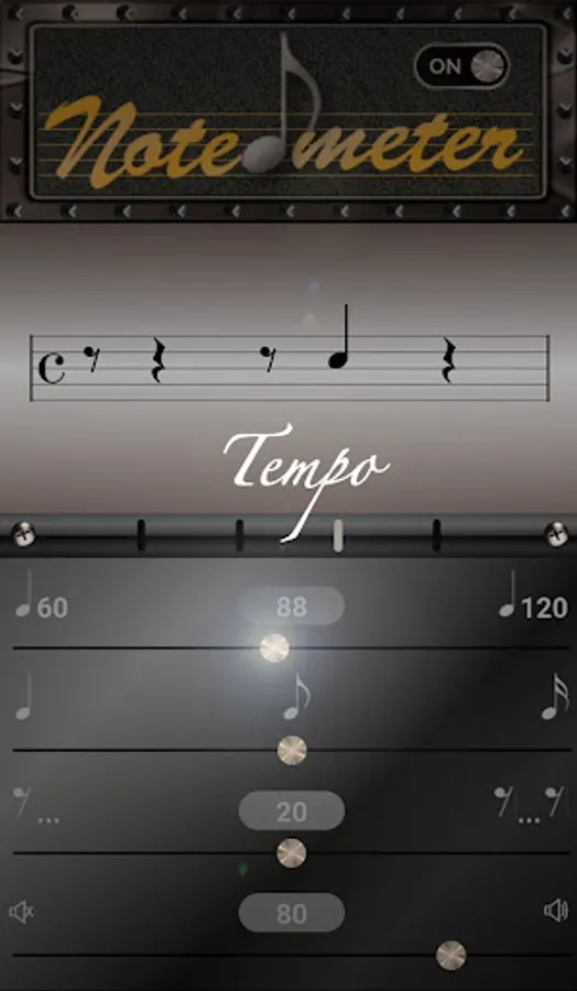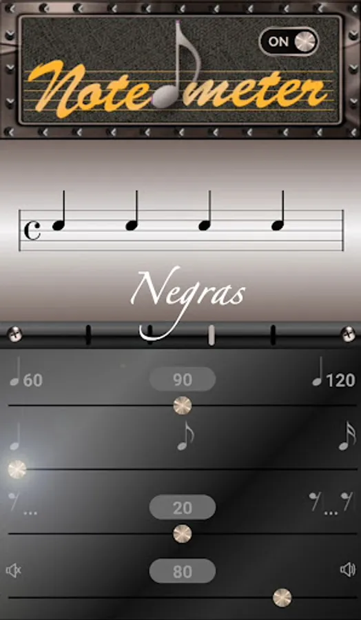 NoteMeter is a revolutionary rhythm reading application that allows musicians to practice reading music. All you have to do is activate the tempo player and bars of different levels of complexity are randomly displayed, allowing the musician to play them on the instrument as they are read.
