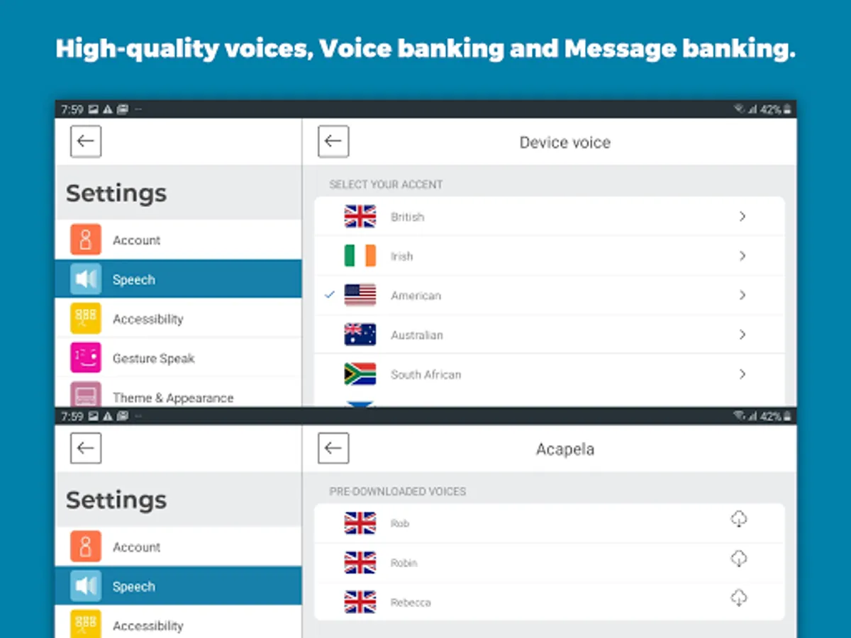 Compatible with the device voices, ModelTalker, Ivona and Acapela voices