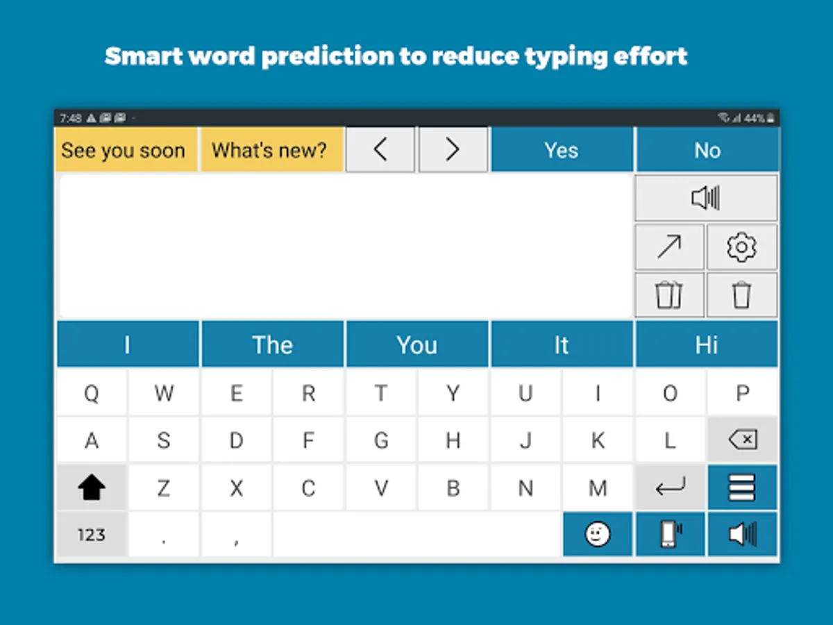 Using the latest word prediction technology, the app makes speaking out a text-based message easy.