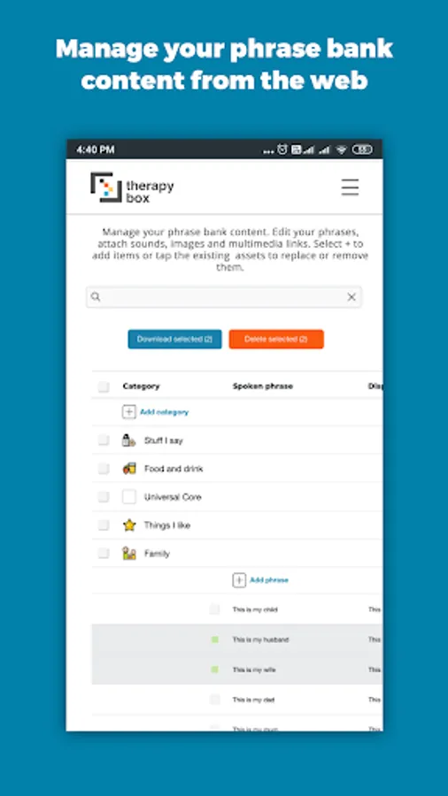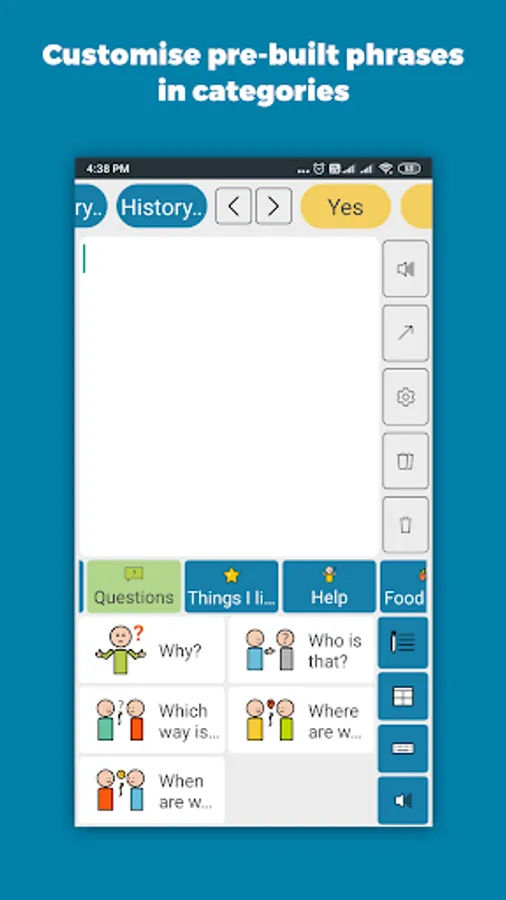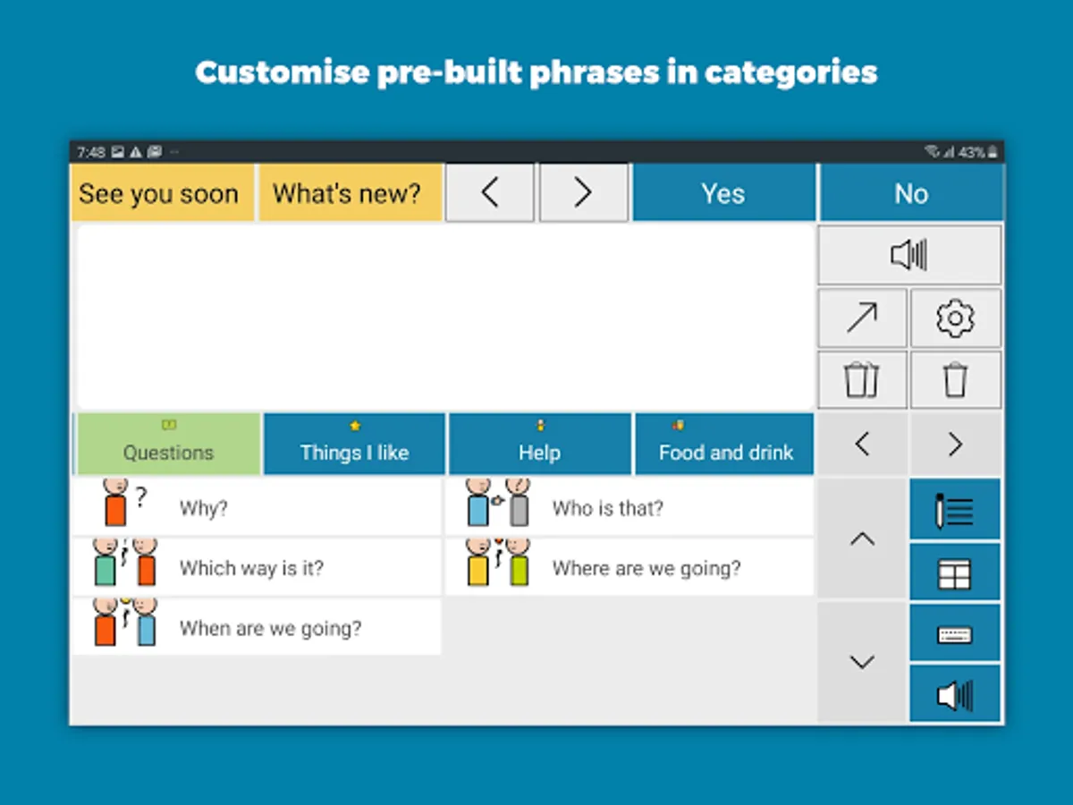 Categories, in Predictable, make it possible to save your frequently used phrases or sentences and easily retrieve them when you want to speak them.