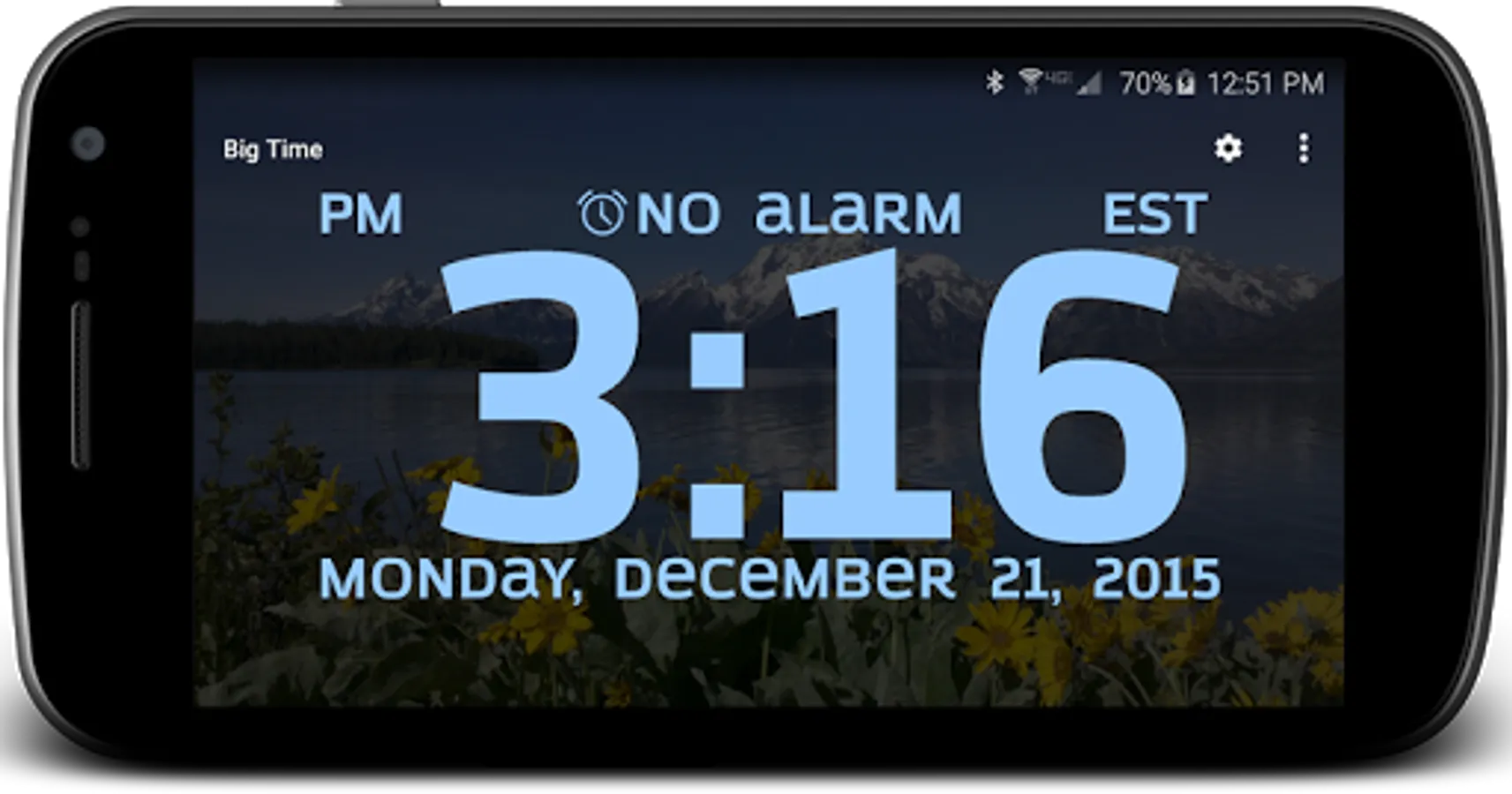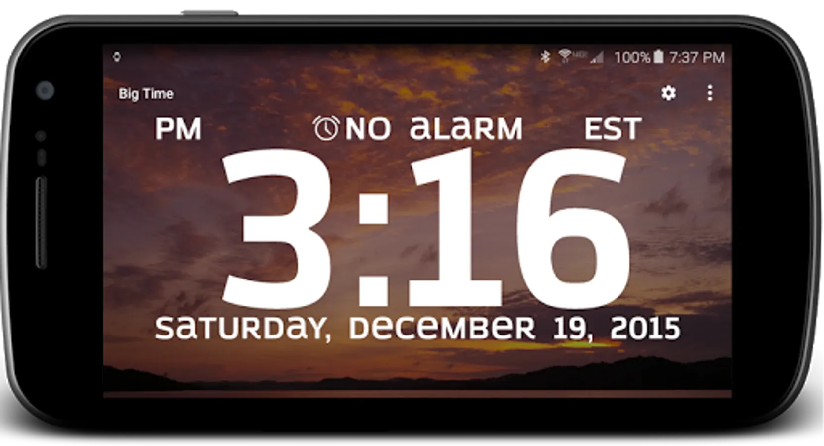Big Time - elegant desk and night stand clock with time that fills the display. Also displays date, time zone and the next active alarm (if set). Touch the screen to dim for night use. Easily adjust night time dim level or set to automatic based on surrounding light (sensor if present). Use as a home screen widget or add on your lock screen. Can be run as a Daydream when docked. Use (included) photos as background or select a background color. Select one of four font types and colors.