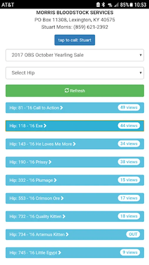 This app is designed to allow owners and consignors "quick&easy" access to sales information. Select the sale from the drop-down menu and the interface will display buttons for each of your horses in that sale.