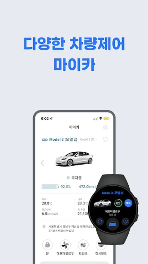 Use the Watch (Wear OS) app to conveniently check the vehicle status and conveniently control it.