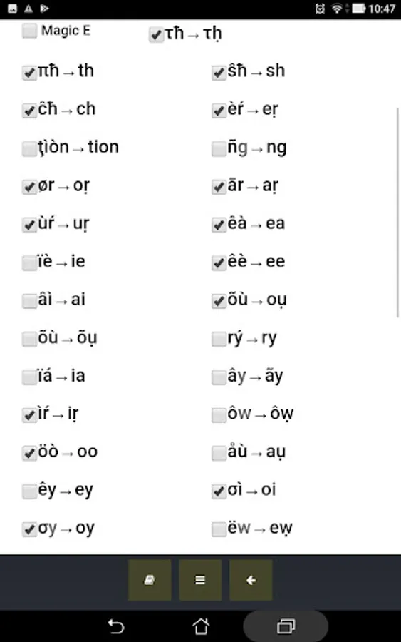 5) Common patterns like 'sh', 'ch', 'ea', etc can be left unmarked
