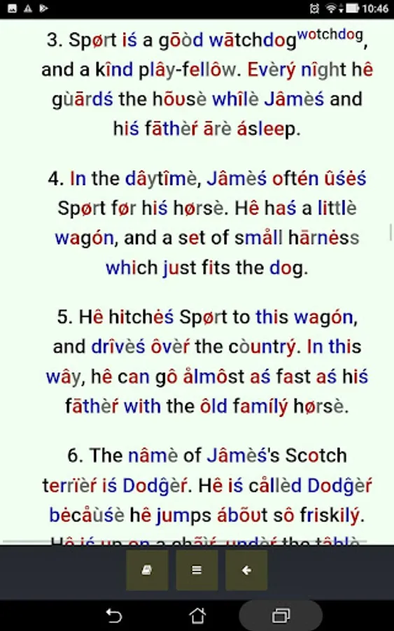 This is an interactive book that allows varying amounts of phonic assistance to be added to English words.
