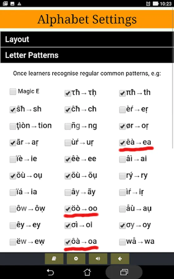 5) Common patterns like 'sh', 'ch', 'ea', etc can be left unmarked