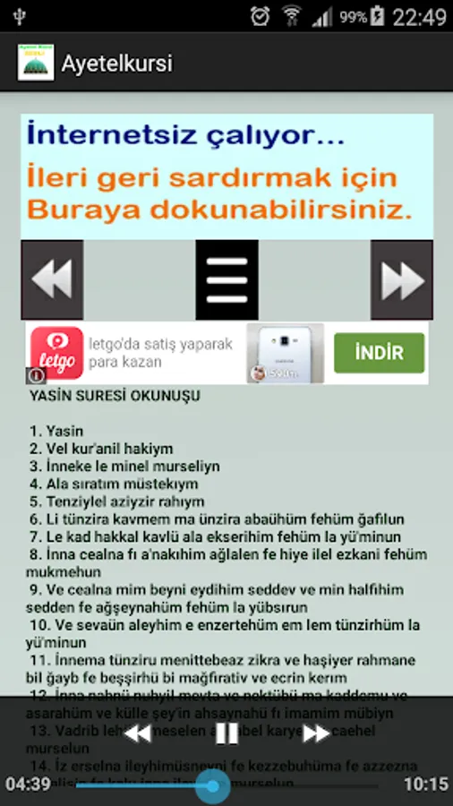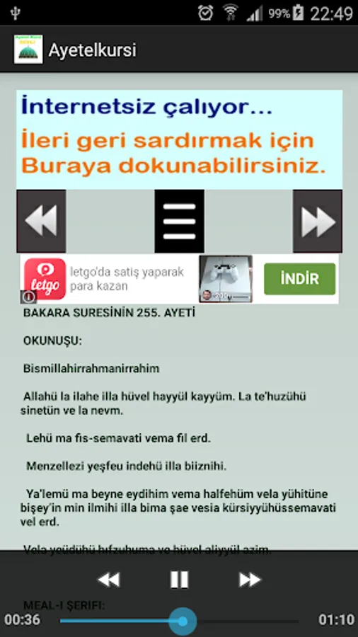 In this application, there are 255 verses of the Surah Al-Baqara known as Allahula. Ir Whoever reads Ayetel Kursi in the morning with the first three verses of the Maoism in the first three verses of Surat Al-Baqarah 255, is kept until the evening. Evening is read by the morning through the verses are protected by these verses ler in the form of the hadith-i sharif also found.