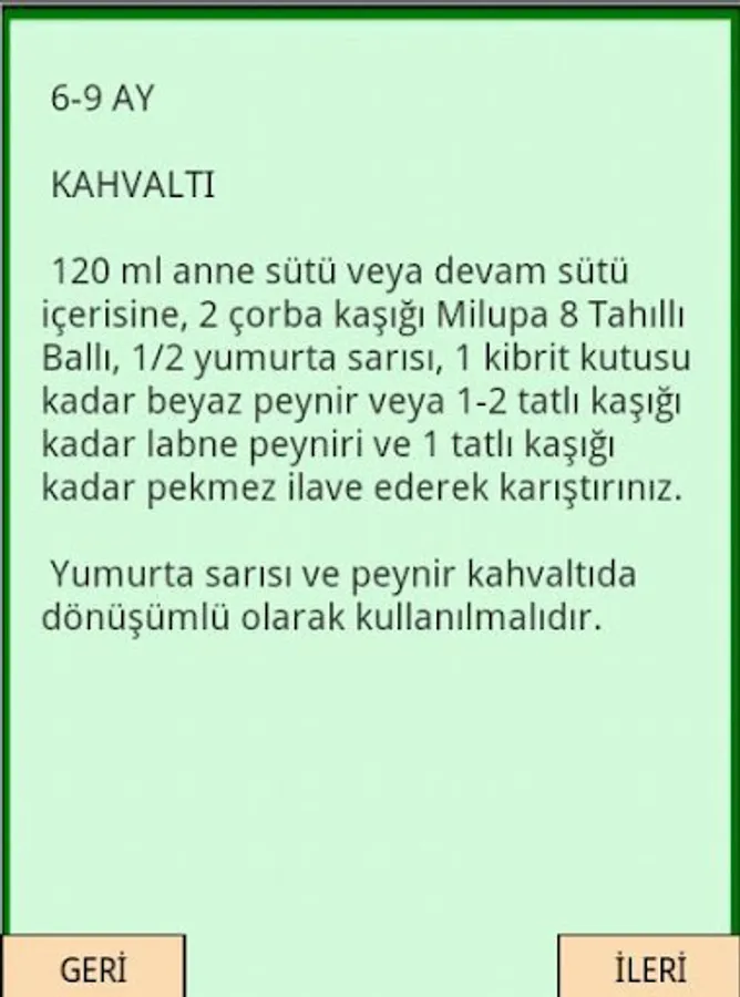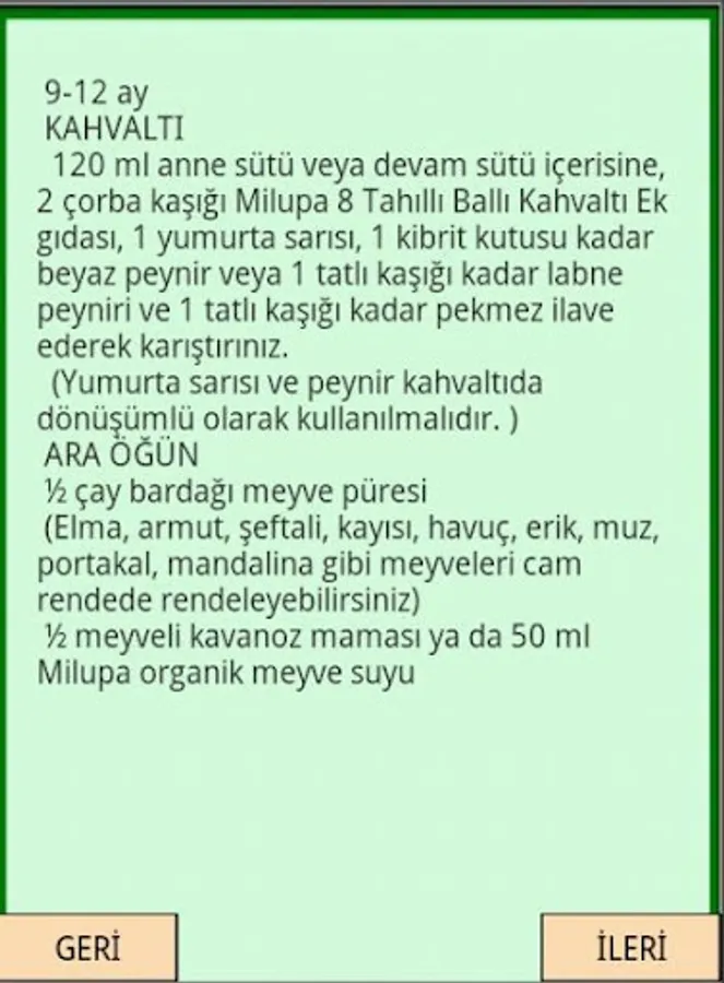 In this application, 6-9, 9-12 and 12-36 months old children in our daily diet STATEMENTS ARE.