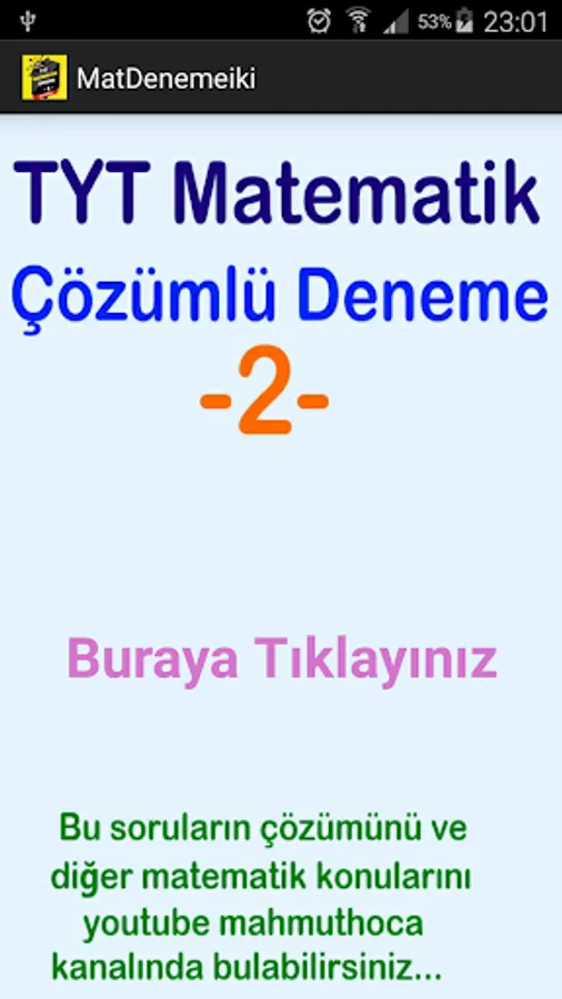 We would like to thank you to Mahmut Hoca channel who cooperated with us for the solution of the mathematics test in our application.
