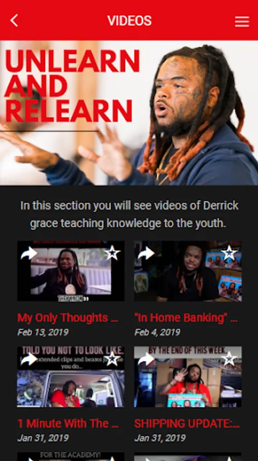 Derrick Grace the founder of the app Unlearn and Relearn in this app you will be able to learn about banking, and finances. Thank you for downloading the Unlearn and Relearn app ENJOY!