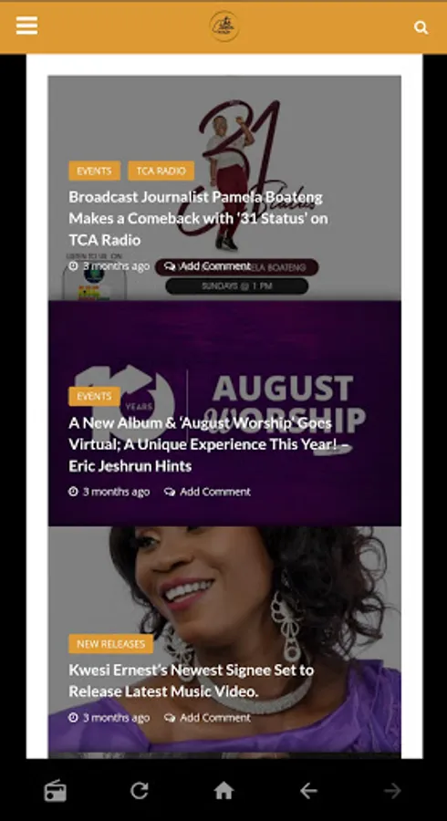 The users of TCA RADIO App will have the priviledge of following and listening to some of the most influencial gospel artists and get blessed by their ministrations.