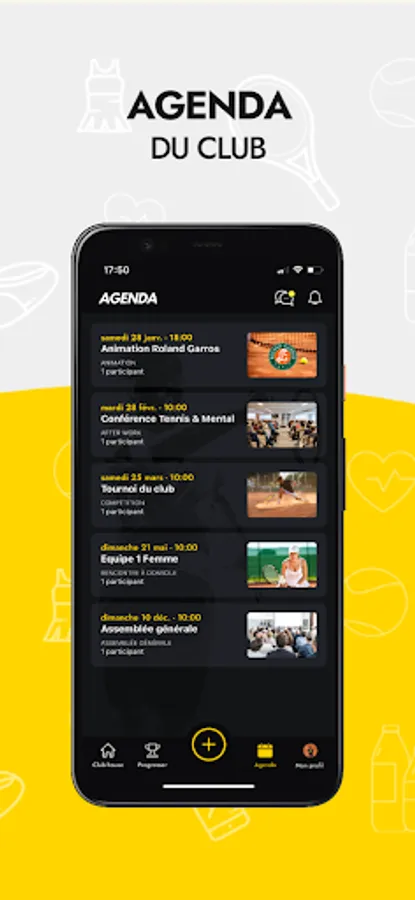 Agenda of all club events with possibility of registration.