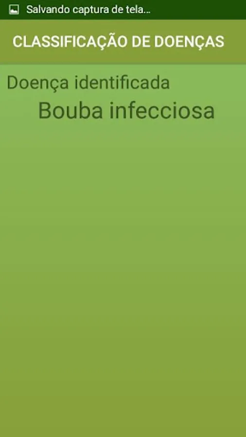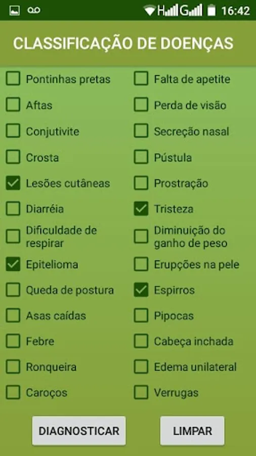 This application is a support tool for Veterinary Medicine professionals in the diagnosis of Bouba Infecciosa and Coryza Infectious diseases, which can manifest in birds, and which have very similar symptoms. It is the result of research involving professionals in the area of Zootechnics and Computer Engineering at the Federal Institute of Triângulo Mineiro (IFTM), Campus Uberaba and Uberaba Parque Tecnológico, through Scientific Initiation projects. An Artificial Neural Network takes into account the experience of 57 specialists in poultry production so that, based on the information of symptoms presented, it can be classified as one of the diseases mentioned above, or indicate a third probable disease. The probability of a correct classification is approximately 94%. It should be noted that the application does not replace the professional in the field, it only serves as a subsidy tool in your decision making.