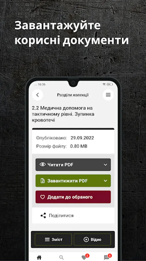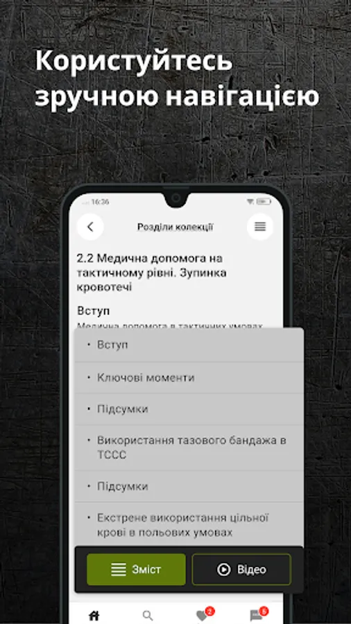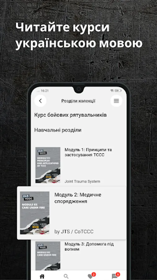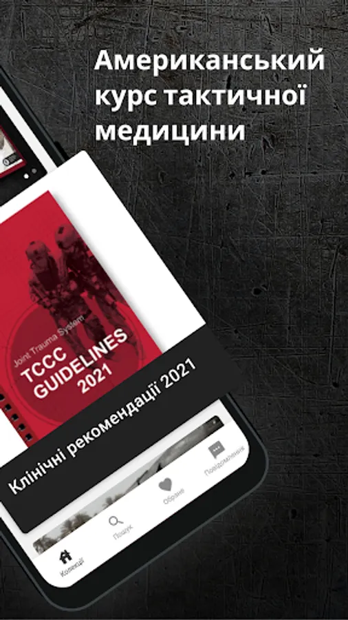 TCCC.org.ua is a mobile application that provides access to tactical medicine training materials developed by the American Committee on Tactical Medicine (CoTCCC) and the Joint Trauma Commission of the US Department of Defense (Joint Trauma Commission, JTC). Original materials are posted on deployedmedicine.com. The application allows users to view translations of materials in Ukrainian.