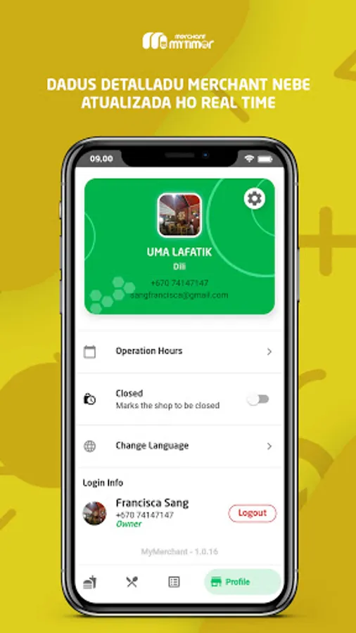 You can use MyTimor Merchant Apps to manage your store and receive orders from MyFood Services in MyTimor