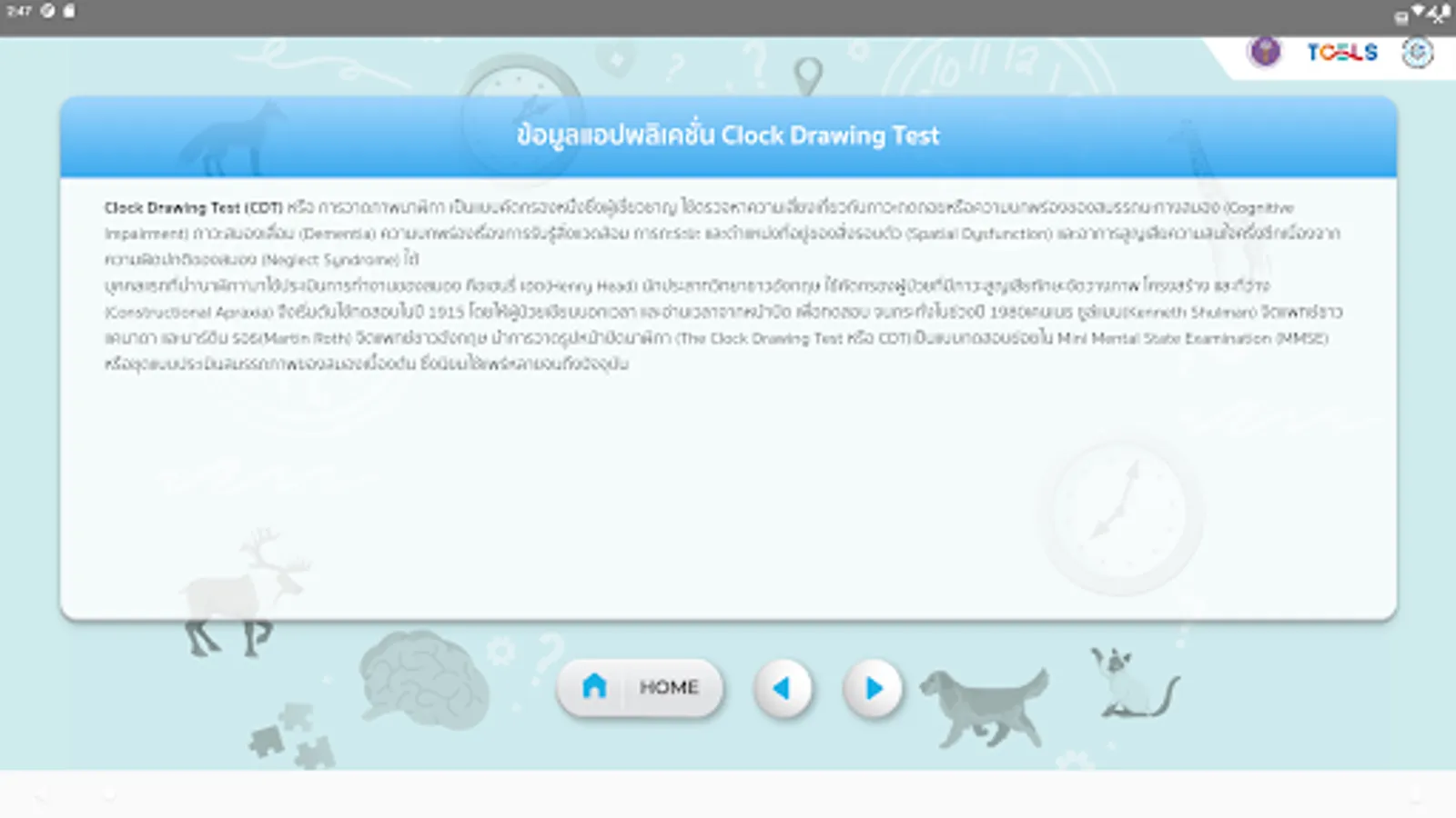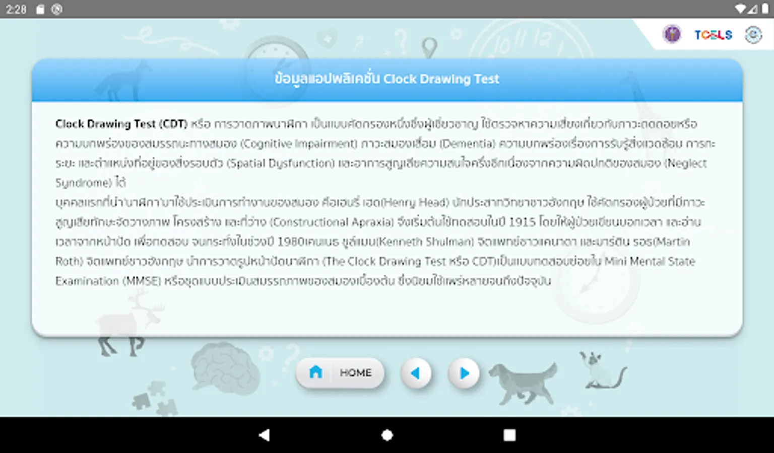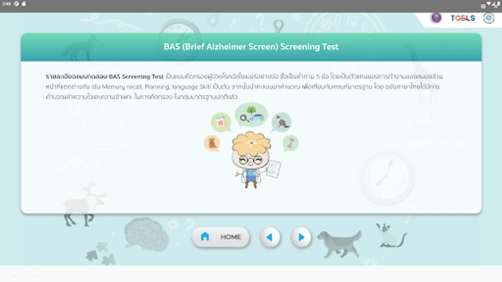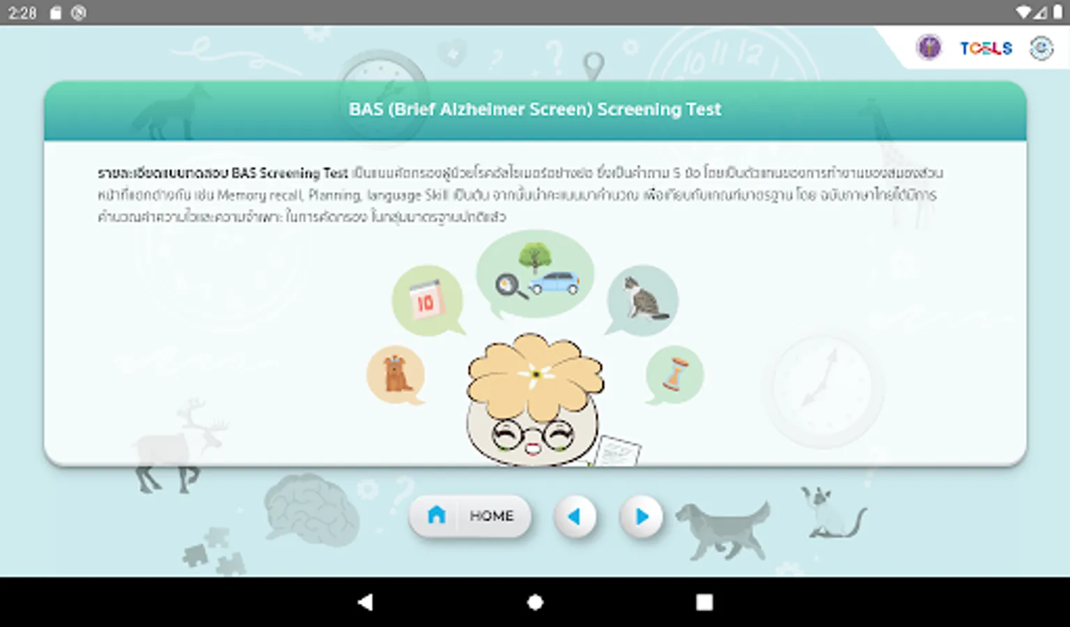 Alzheimer's disease screening form by experts Including applications include Clock Drawing Test and BAS (Brief