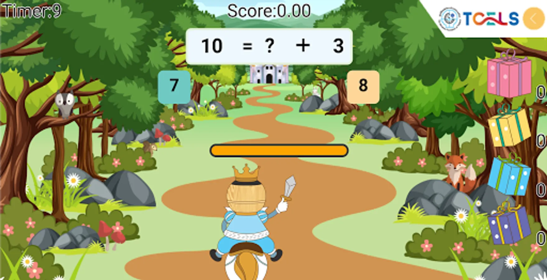 The knight rode to the castle on the way there would be mathematical questions to interrupt. We will have to help the knight solve the equation by pressing the numbers left or right that are the correct answer to get the right score. Wrong answers will be reduced by health and points or if the answer is not given within 10 seconds, the power will decrease and the question will change. The game calculates both + - x and / increasing challenges. Each level has 12 levels.