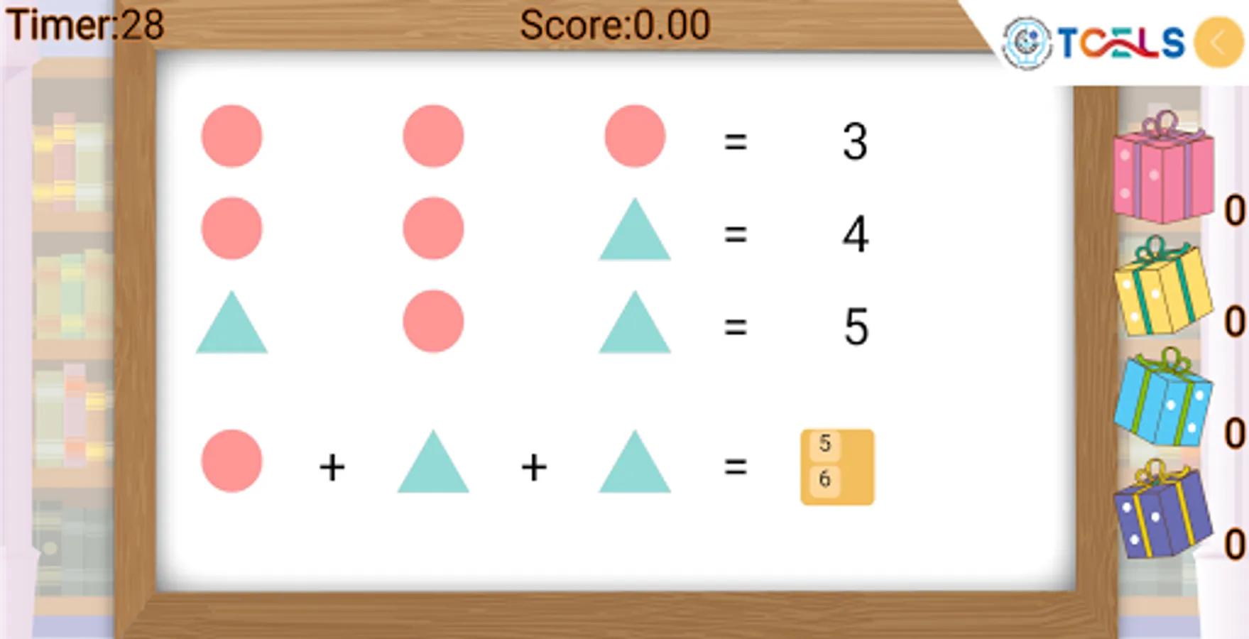 The princess wants to find a math game to play while learning but is bored. Santapapa therefore thought of the game, giving an example of how to place a geometric shape and produce the right result as a number. As shown in the example 3 rows and in row 4 for the princess to find the answer, we have to help the princess. Calculation combined with the observation of symbols will cause both + - x and / games calculations to increase in each challenge. level There are 12 levels in total.