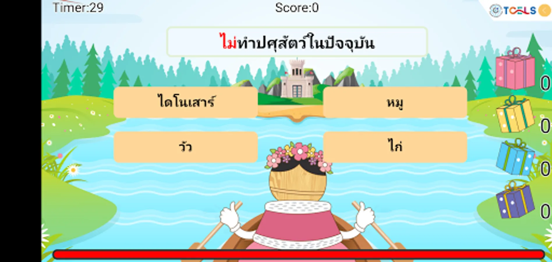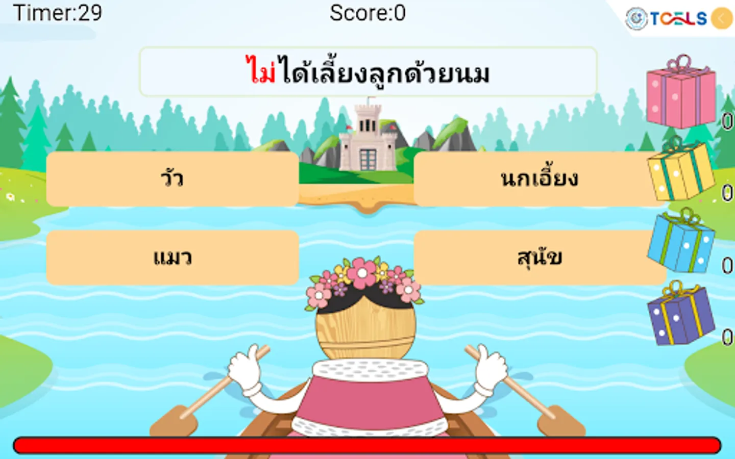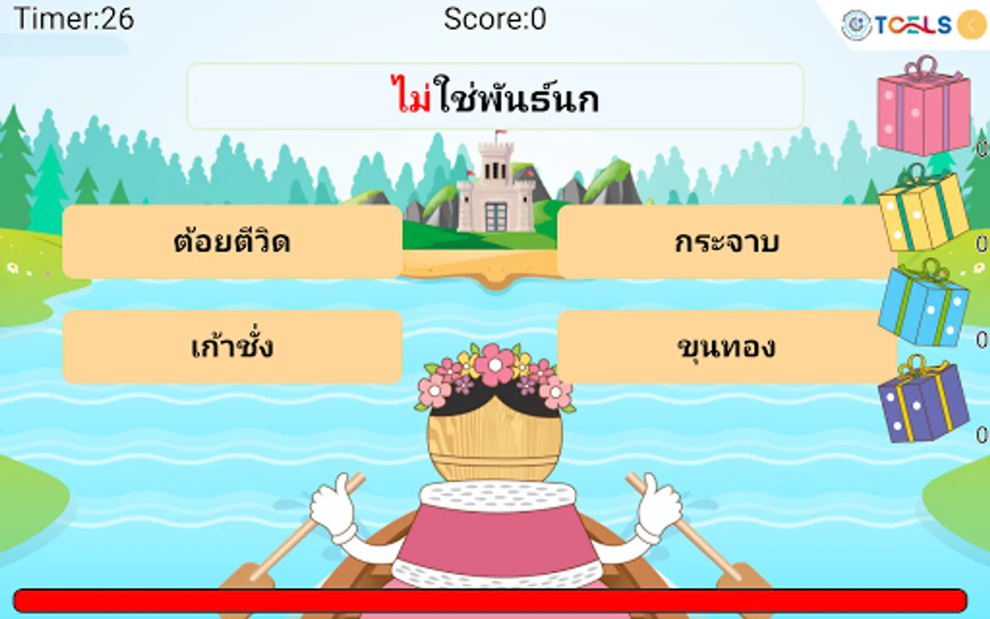 The Princess went on a vacation during an off-camp language training by paddle around the camp on the way back. There will be words floating on the way back to the camp. The princess must make the right choice. Let's help the princess choose the correct answer. Correct answer gets more points Wrong answers will be reduced health and score. Or if you don't answer in 30 seconds, your power will decrease and the question will change. There are 12 levels of challenge added to each level.