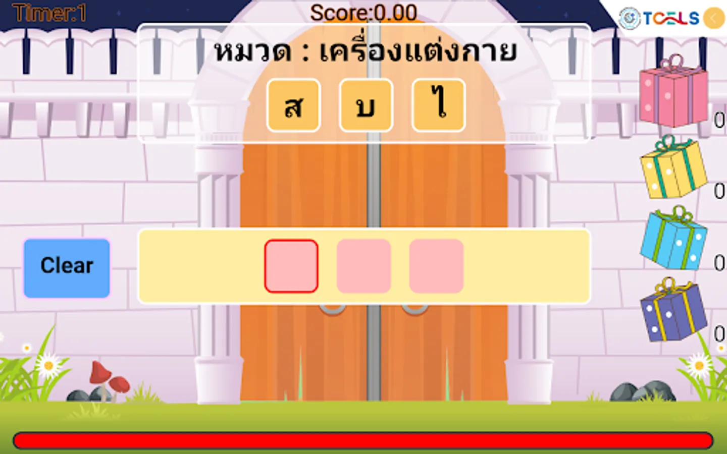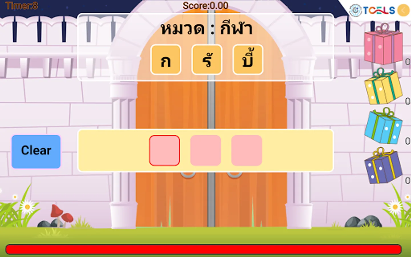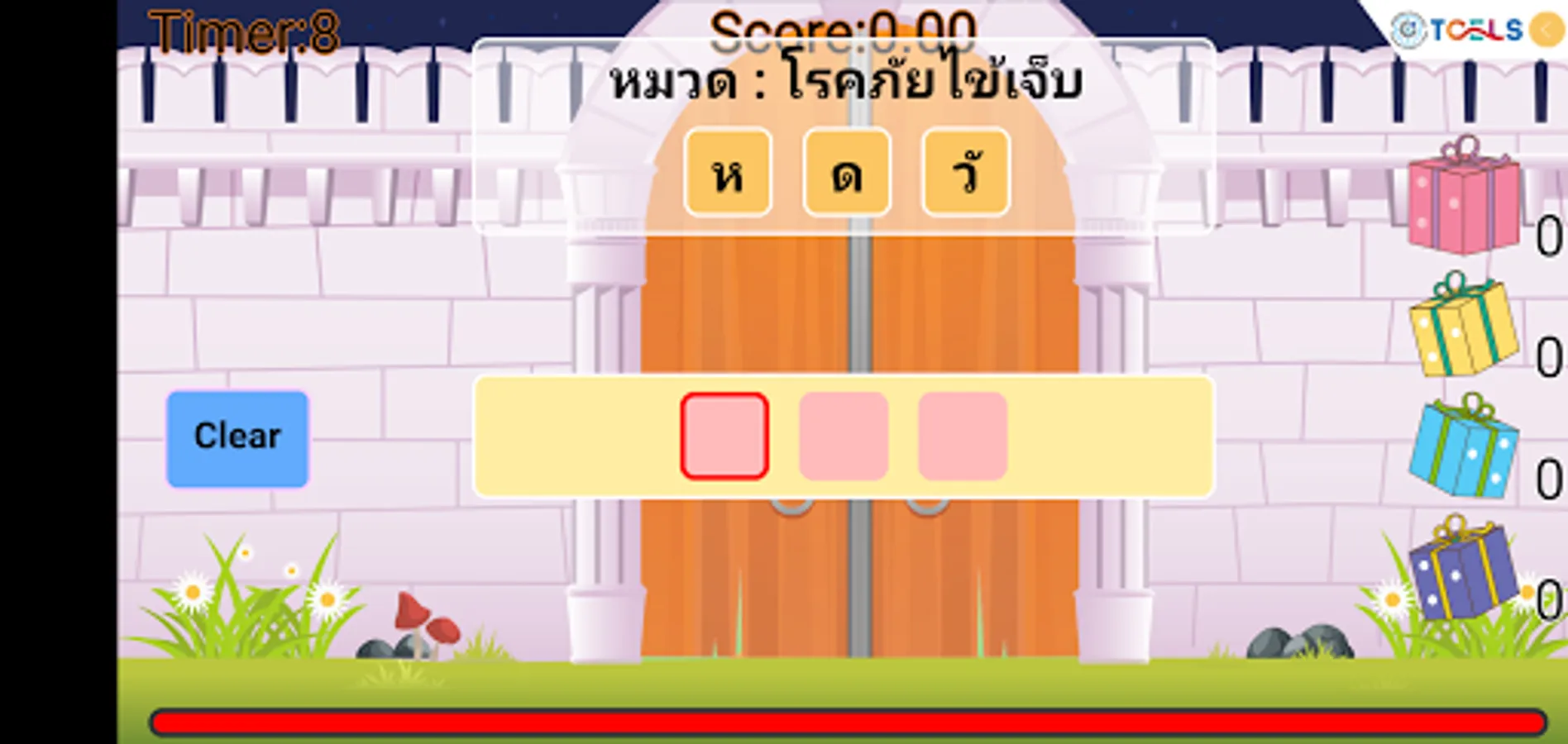 The Queen had to enter a code to open the door to the castle. By pressing a choice of consonants And the alternating vowels on top If correct answer is chosen, the door will open. But if you choose wrong The door code has changed. The bars will slide down to close the castle door. Choose the wrong three times, the bars will close the castle door completely. Let's help the Queen choose the correct password. There are 12 levels of challenge added to each level.