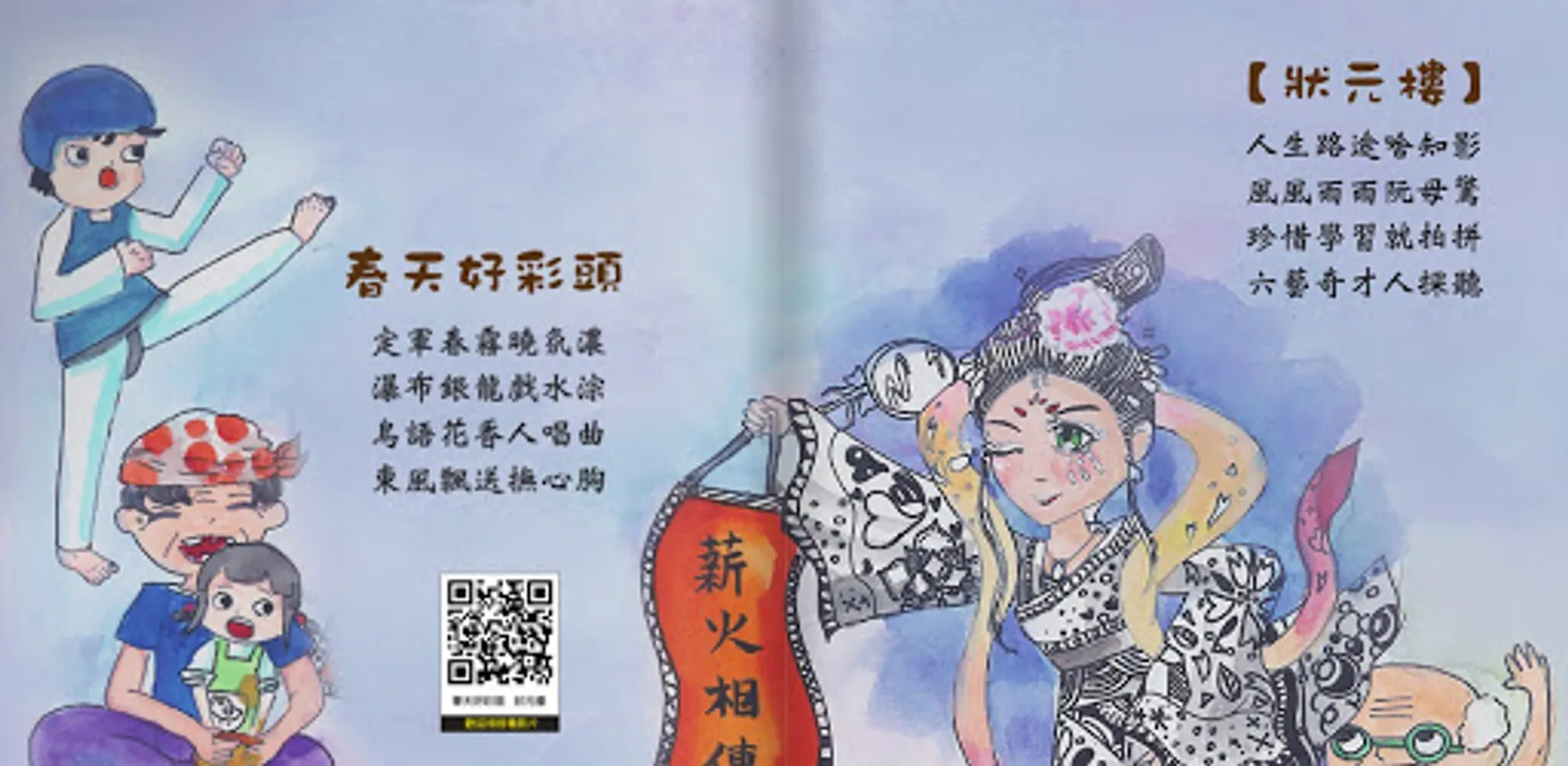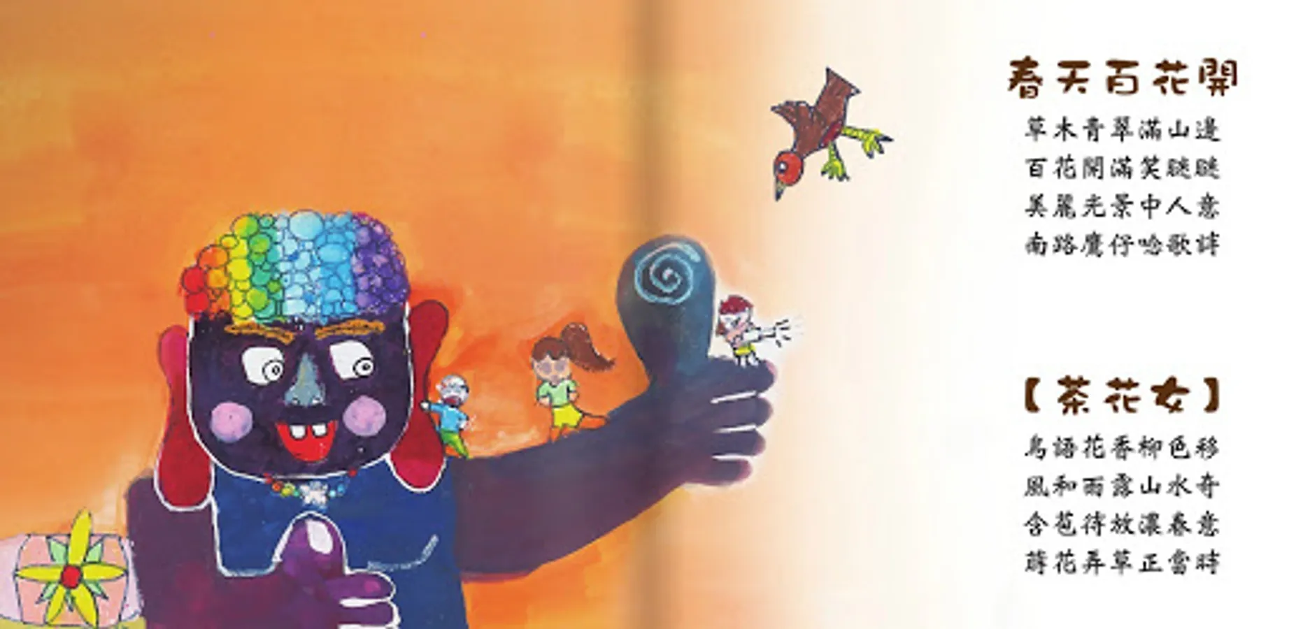 An audio book created by teachers and students of Dazhu Elementary School in Changhua City, Changhua County, Taiwan. It presents Taiwanese four-sentence couplets with Taiwanese operas and children’s children’s children’s illustrations.