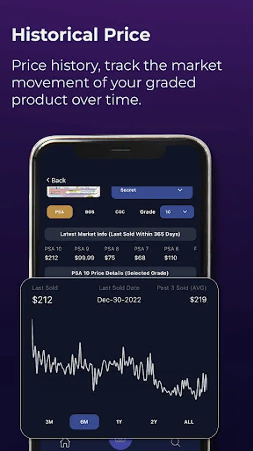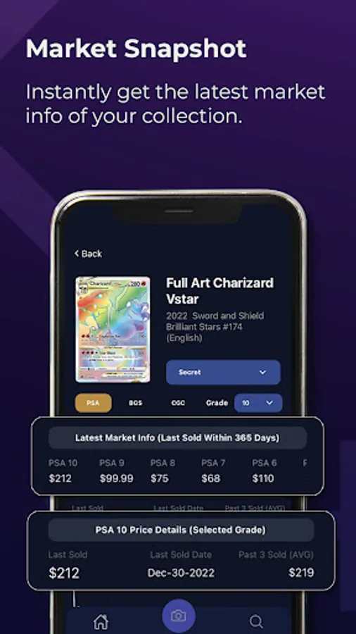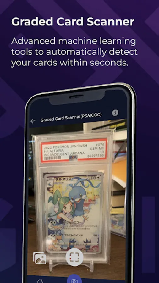 - Camera feature included. By simply taking or uploading a photo of your graded card, the app can automatically recognize the card and provide the latest price information on the card. It is that simple.
