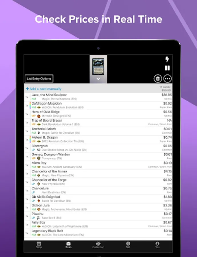 Fully Integrated Scanning - Scan Magic, Pokémon and Yu-Gi-Oh! cards to instantly find prices, sell and shop on TCGplayer.com, add to your collection—even create Trade-In submissions for your Magic cards.