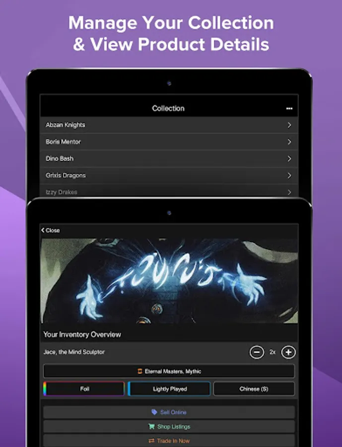 Manage Your Collection - Create new decklists or import lists you’ve saved from previous versions of the TCGplayer App. You can also rename or duplicate lists and share them with your friends via email or another app.