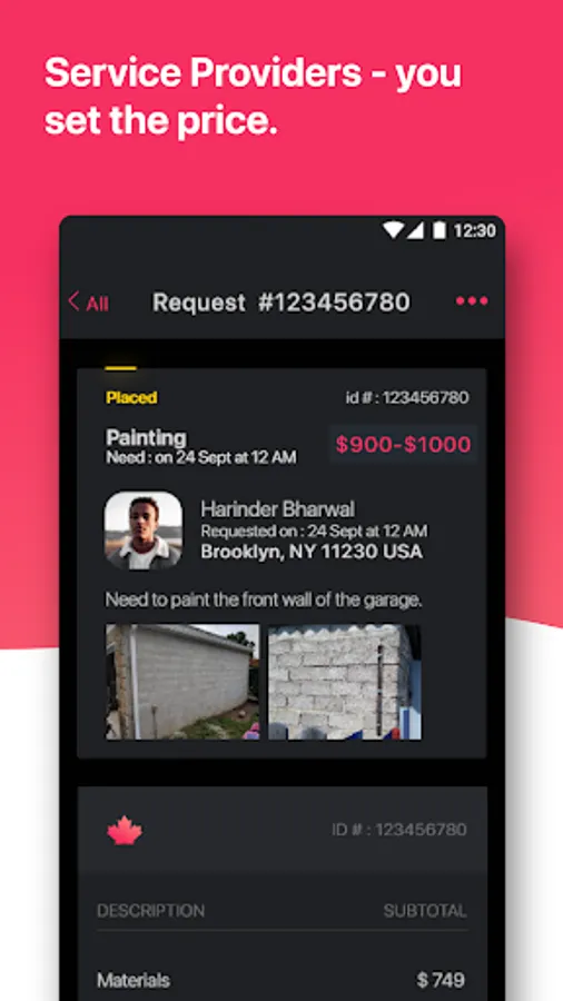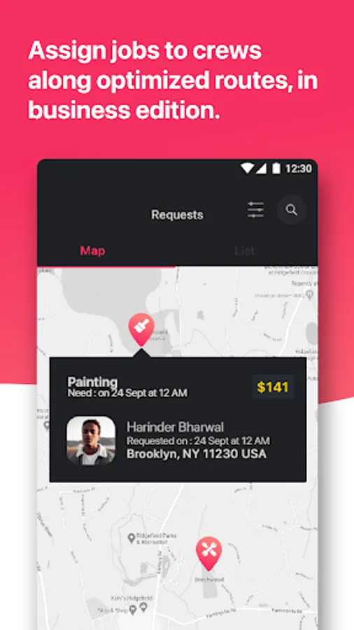 Customers can find nearby contractors, and send them jobs, or post a jobsnap for the community to bid on!