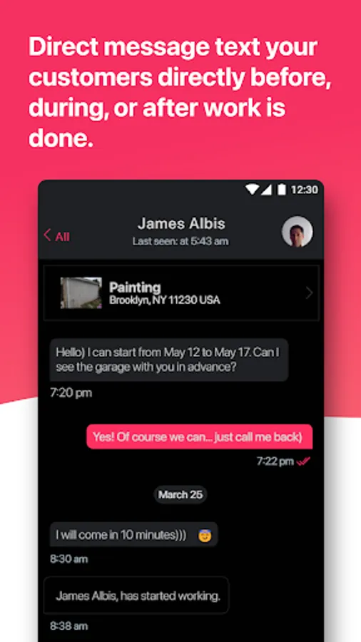 Chat functionality is organized per-job, which facilitates communication while keeping it focused on the job at hand. Then each job-related chat becomes the single record of correspondence about that job, which makes it easy to find what was said earlier.