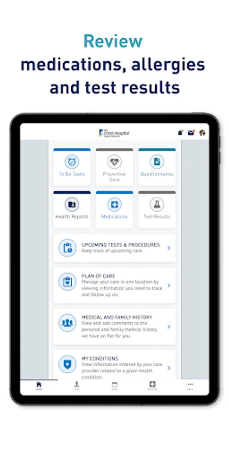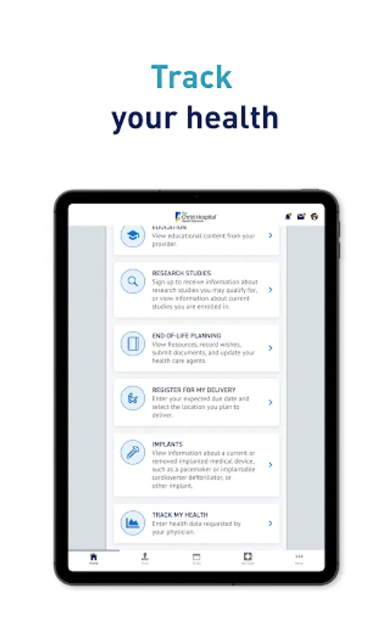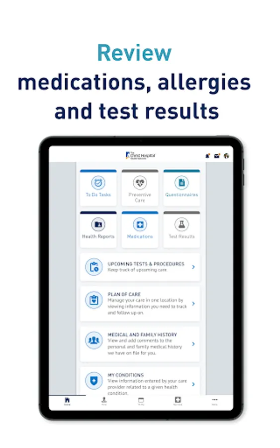Whether you’re at work, on the road, or at home, you can use The Christ Hospital Health Network’s patient app to: