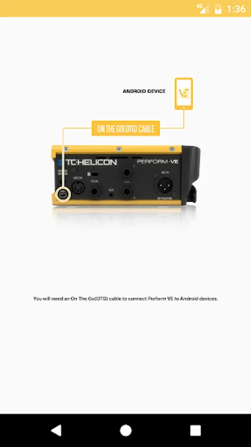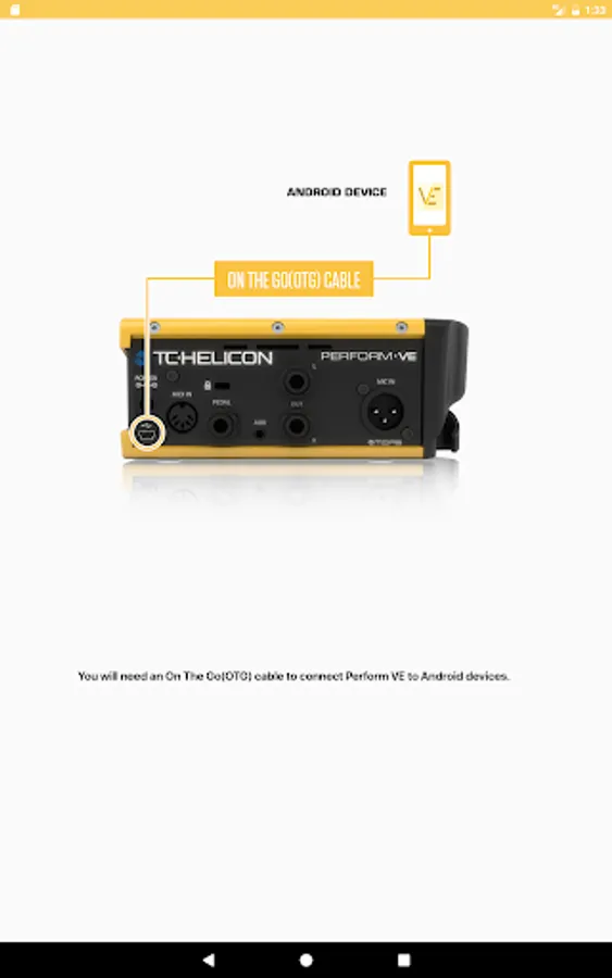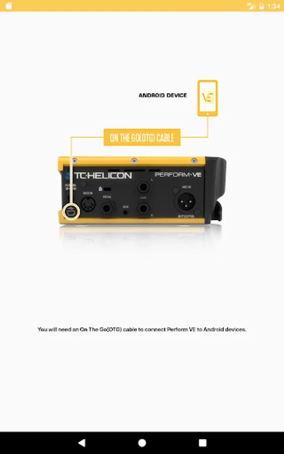The Perform-VE App offers two-way preset transfer using an On the Go (OTG) cable.