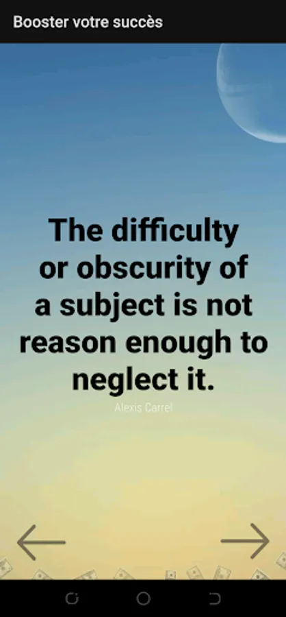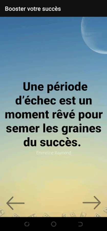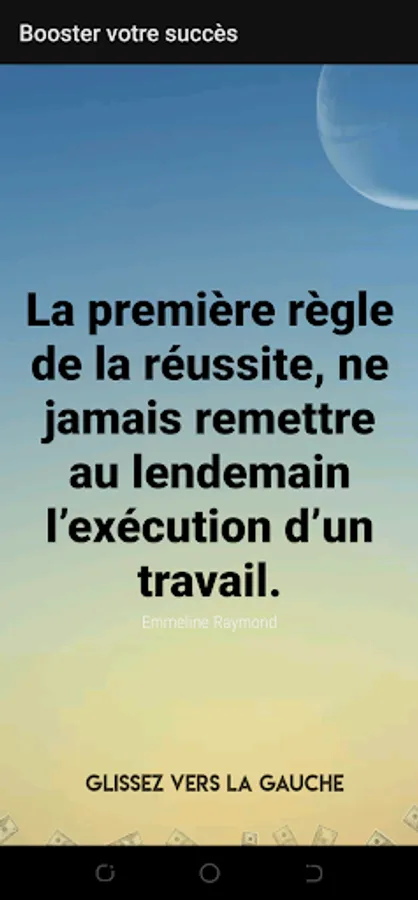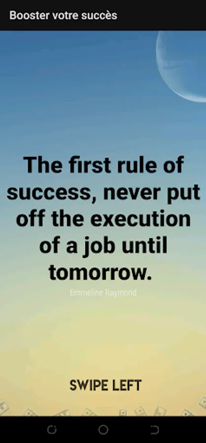 We offer you an application that will allow you to face and succeed in all your projects with motivation thanks to its motivational phrases in French and English versions.