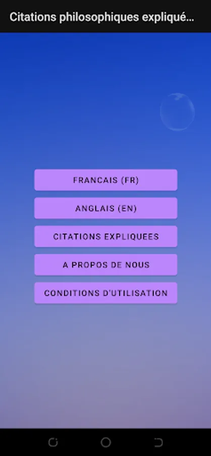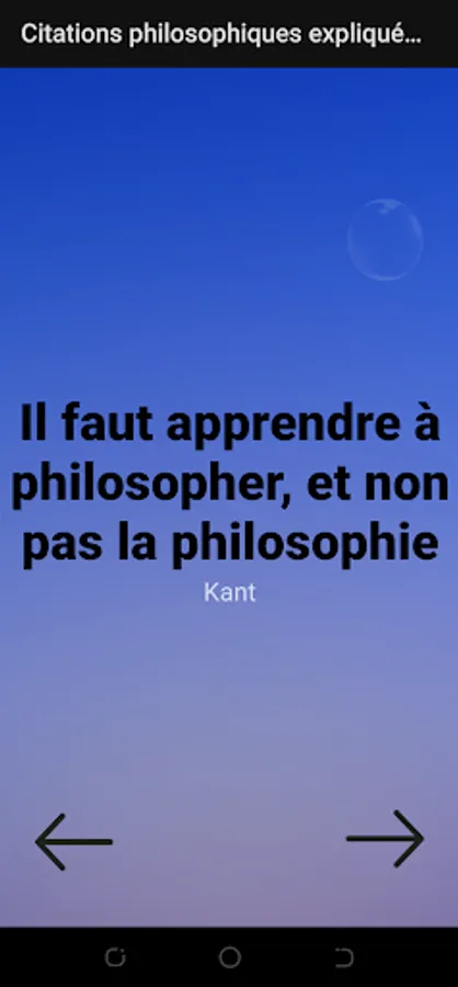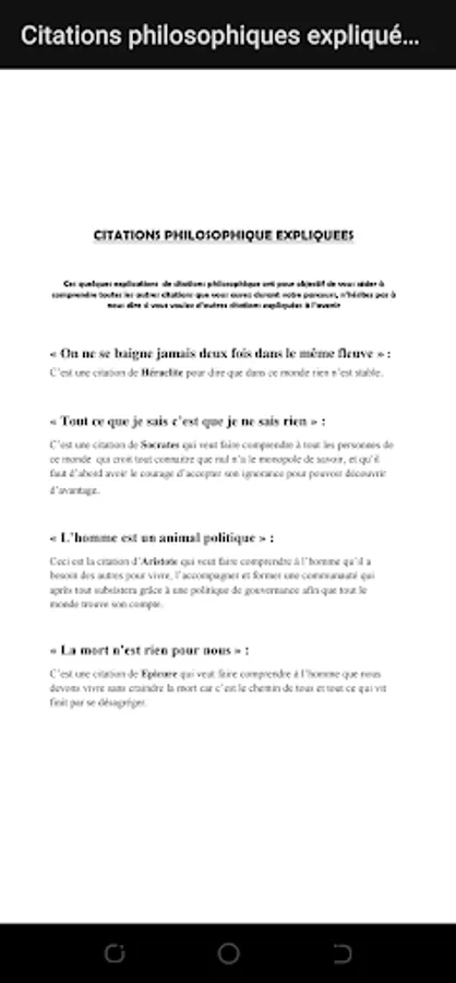 In this application we offer you in two languages, therefore French and English, philosophical quotes that a student must remember by heart.