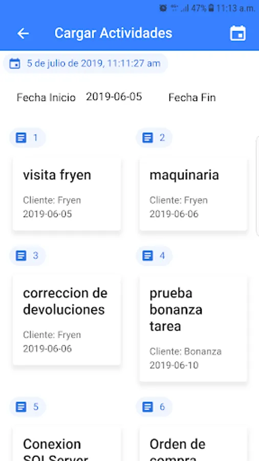 Allows you to consult the activities that you registered in the platform and these will be saved in your agenda to later record your reports of each of them, plus you can include a photo in your reports.
