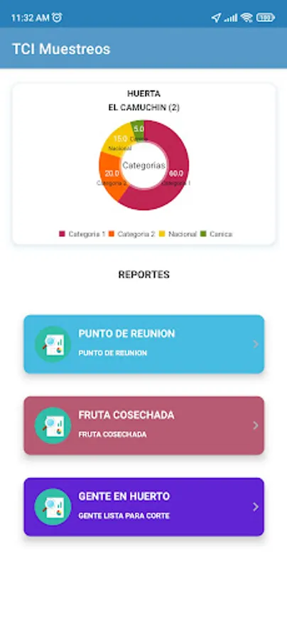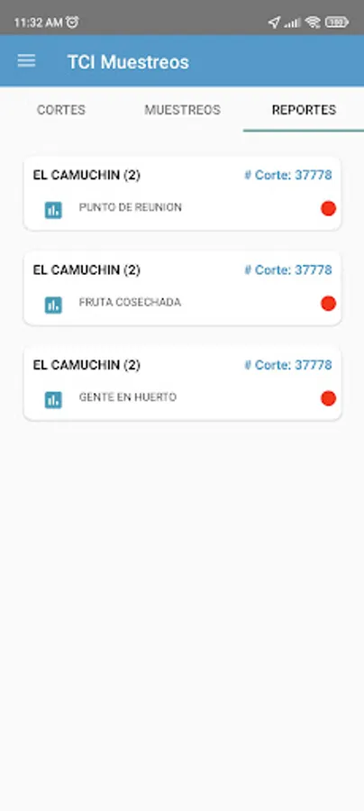 Record of Reports according to the type of user and incidents presented in the orchard