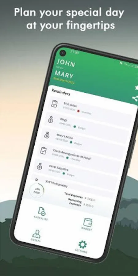 Keep track of your expenses and manage them at ease with Wedlock! You will be reminded about the expenses at the right time. You will not have to fill-up your mind with expense deadlines anymore.
