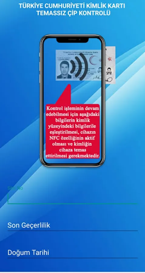 Contactless chip of the Republic of Turkey Identity Card, swipe or manually enter Mrzim information, you can verify with the help of NFC in your phone, you can view the certificate status.