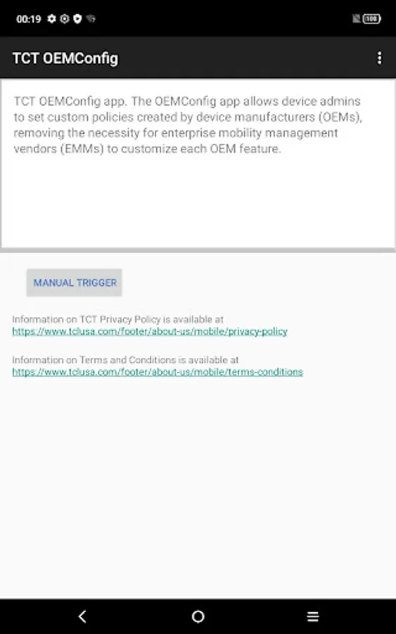 The TCT OEMConfig app allows device admins to set custom policies created by device manufacturers (OEMs), removing the necessity for enterprise mobility management vendors (EMMs) to customize each OEM feature.