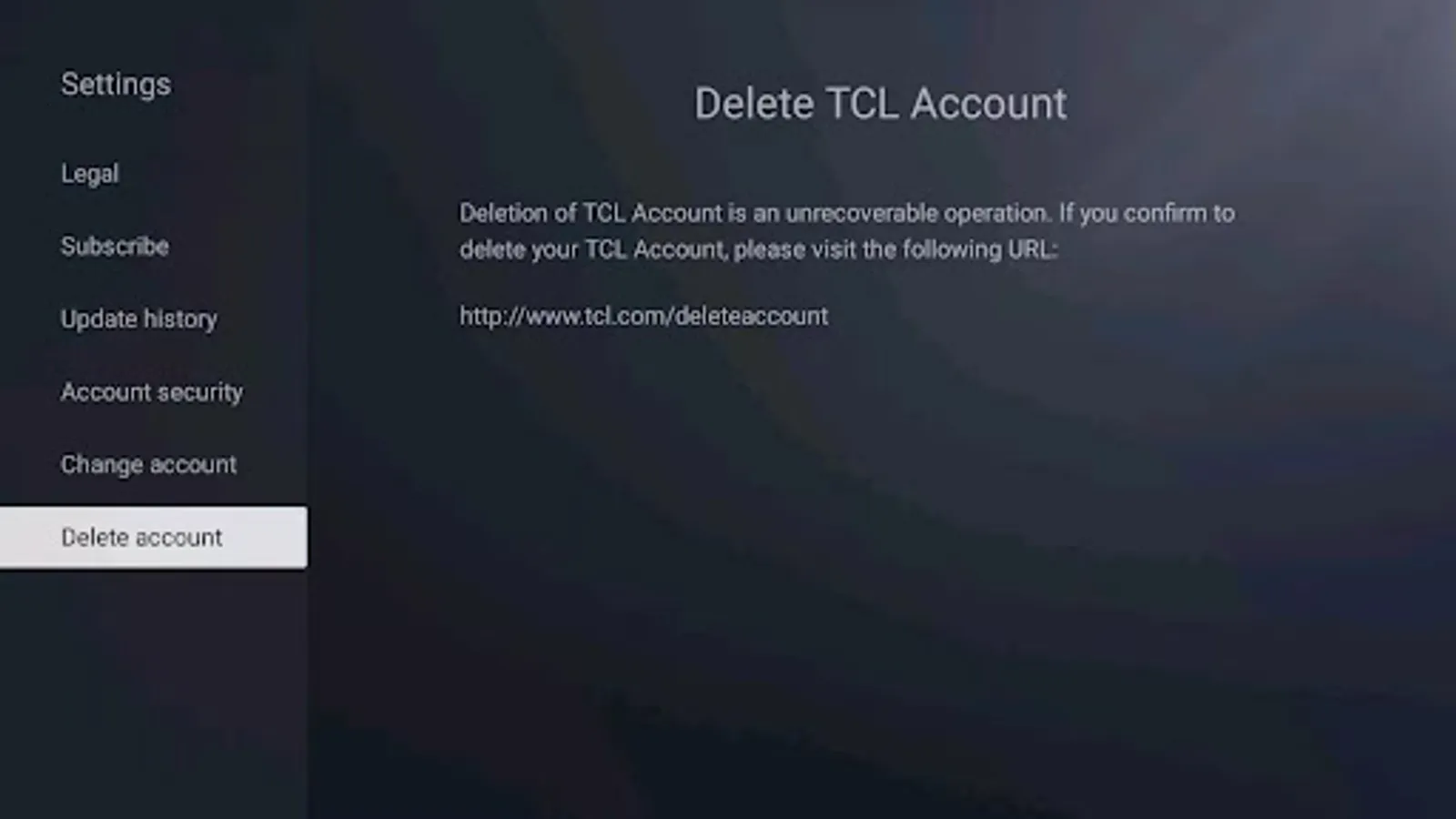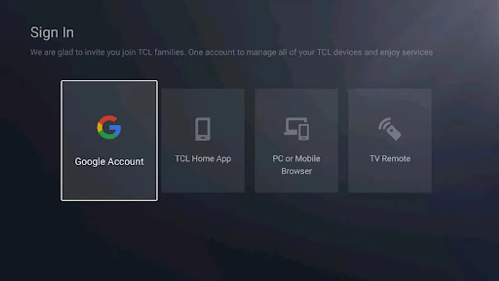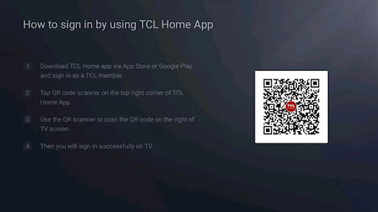 An application used to manage TCL device accounts, on this application you can register TCL device accounts, log in to TCL devices, or modify your TCL account password and personal information