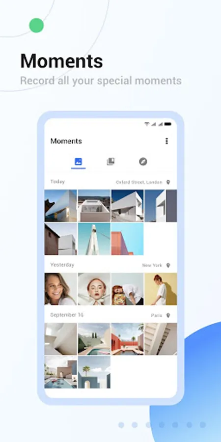 With deep learning and AI technology, we can recognize all faces and some specific scenes taken by your camera and classify them by people and scenes.
