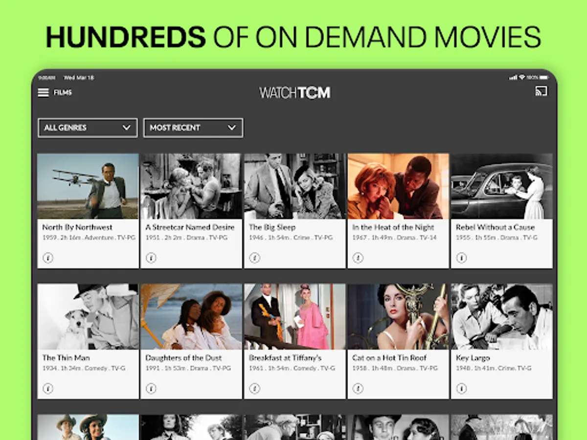 HUNDREDS OF MOVIES ON DEMAND: Our extensive library is updated each month with new titles, featuring introductions by special guests and our TCM Hosts, including Ben Mankiewicz. Movies are presented UNCUT and COMMERCIAL FREE.